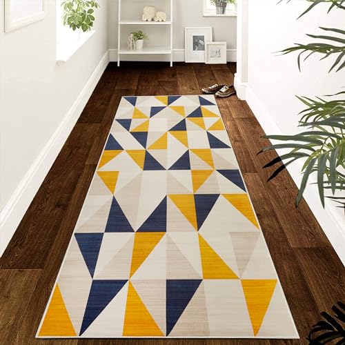 MOONLIGHT20015 Rugs for Hallway 60x220 cm – Geometric Style Yellow Triangle Pattern Area Rugs for Bedroom Living Room – Non Slip Modern Printed Carpet Rug for Lounge, Brio