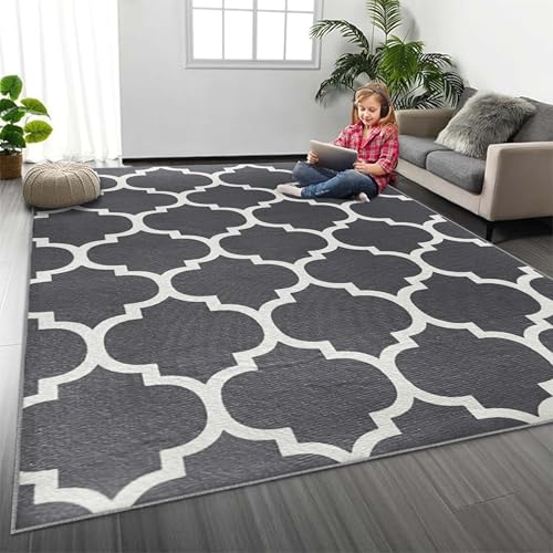MOONLIGHT20015 Rugs Living Room 80x150 cm – Trellis Style Grey Area Rugs for Bedroom Large – Non Slip Bedside Printed Carpet Rug for Lounge, Ava Grey