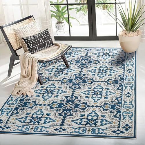 Imperial Rooms Washable Rugs Living Room Small 60x110 cm – Soft Short Pile Blue Area Rugs For Bedroom Kitchen Non Slip Carpet Bedside Rug Traditional Floral Design Vintage Boho Cashmere Rug, Tranquil