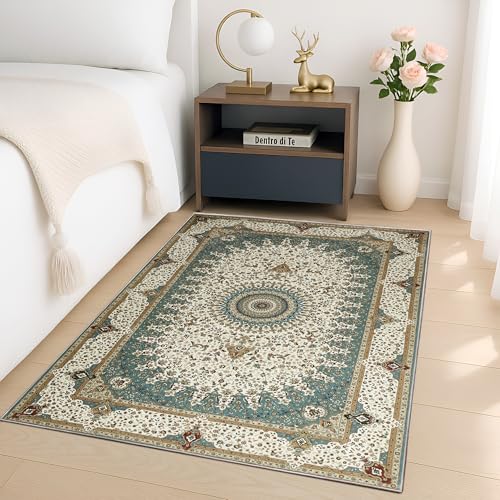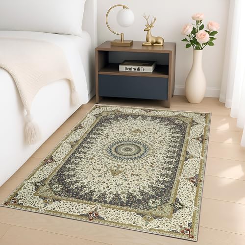 Imperial Rooms Washable Rugs Living Room 80x150 cm – Soft Short Pile Beige Area Rugs For Bedroom Dining Room Non Slip Carpet Bedside Rug Traditional Oriental Design Vintage Boho Cashmere Rug, Radiant