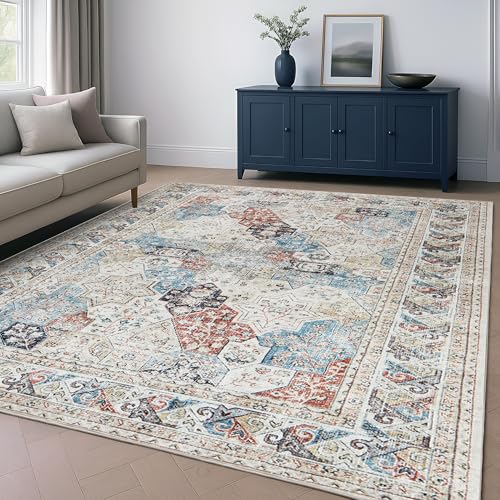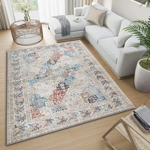 Imperial Rooms Machine Washable Rugs Living Room 120 x 170 cm – Soft Short Pile Large Abstract Cream Area Rugs For Bedroom Non Slip Carpet Bedside Rug Traditional Vintage Boho Cashmere Rug, Coastal