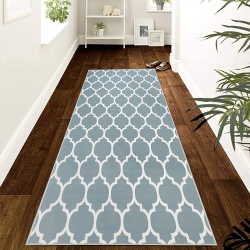 MOONLIGHT20015 Rugs for Hallway 60x220 cm – Trellis Style Area Rugs for Bedroom Living Room – Non Slip Modern Printed Carpet Rug for Lounge Duck Egg Blue, Ava