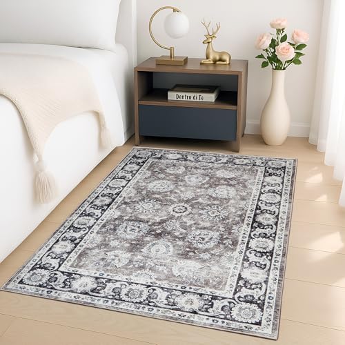 Imperial Rooms Washable Rugs Living Room 80x150 cm – Soft Short Pile Brown Area Rugs For Bedroom Dining Room, Non Slip Carpet Bedside Rug Traditional Floral Design Vintage Boho Cashmere Rug, Harmony