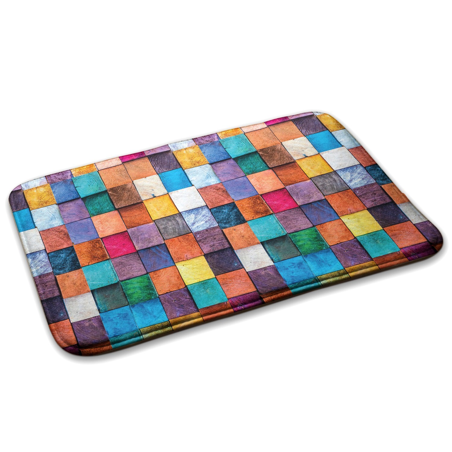 Washable Soft Non Slip Rug Carpet Bedroom Colorful wooden cubes 75cm x 45cm