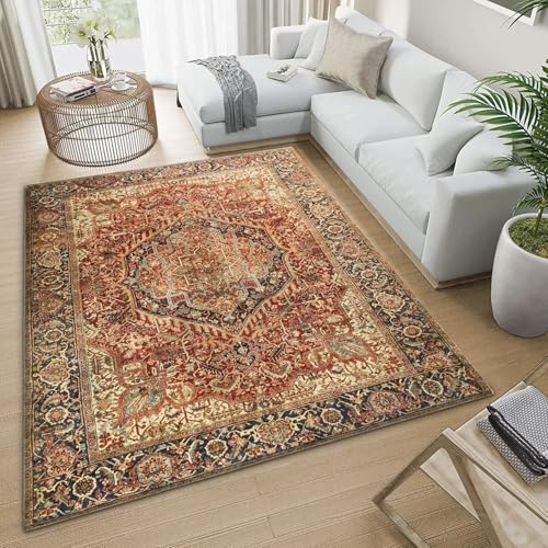 CHOSHOME Machine Washable Rugs for Living Room Large Vintage Area Rugs for Bedroom Soft Short Pile Rugs Non Slip Carpet Oriental Rug for Kitchen Dining Outdoor 200x290cm Orange Faux Wool Rug