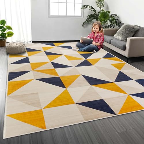 MOONLIGHT20015 Rugs Living Room 80x150 cm – Geometric Style Yellow Triangle Pattern Area Rugs for Bedroom Large – Non Slip Bedside Printed Carpet Rug for Lounge, Brio