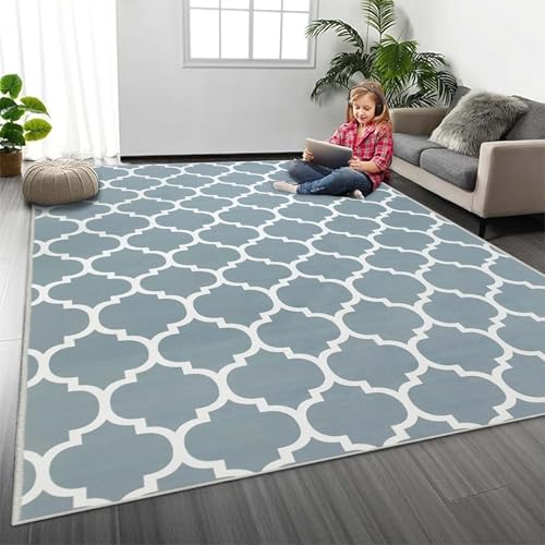 MOONLIGHT20015 Rugs Living Room 80x150 cm – Trellis Style Area Rugs for Bedroom Large – Non Slip Bedside Printed Carpet Rug for Lounge Duck Egg Blue, Ava