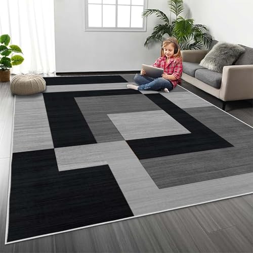MOONLIGHT20015 Rugs Living Room 80x150 cm – Geometric Style Grey Area Rugs for Bedroom Large – Non Slip Bedside Printed Carpet Rug for Lounge, Milo Black & Grey