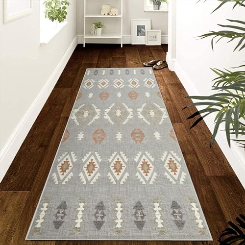 MOONLIGHT20015 Rugs for Hallway 60x220 cm – Geometric Style Tribal Pattern Grey Area Rugs for Bedroom Living Room – Non Slip Modern Printed Carpet Rug for Lounge, Nova