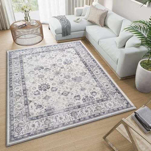 Imperial Rooms Machine Washable Rugs Living Room 120 x 170 cm – Soft Short Pile Large Grey Area Rugs For Bedroom Non Slip Carpet Bedside Rug Traditional Design Vintage Boho Cashmere Rug, Willow Grey