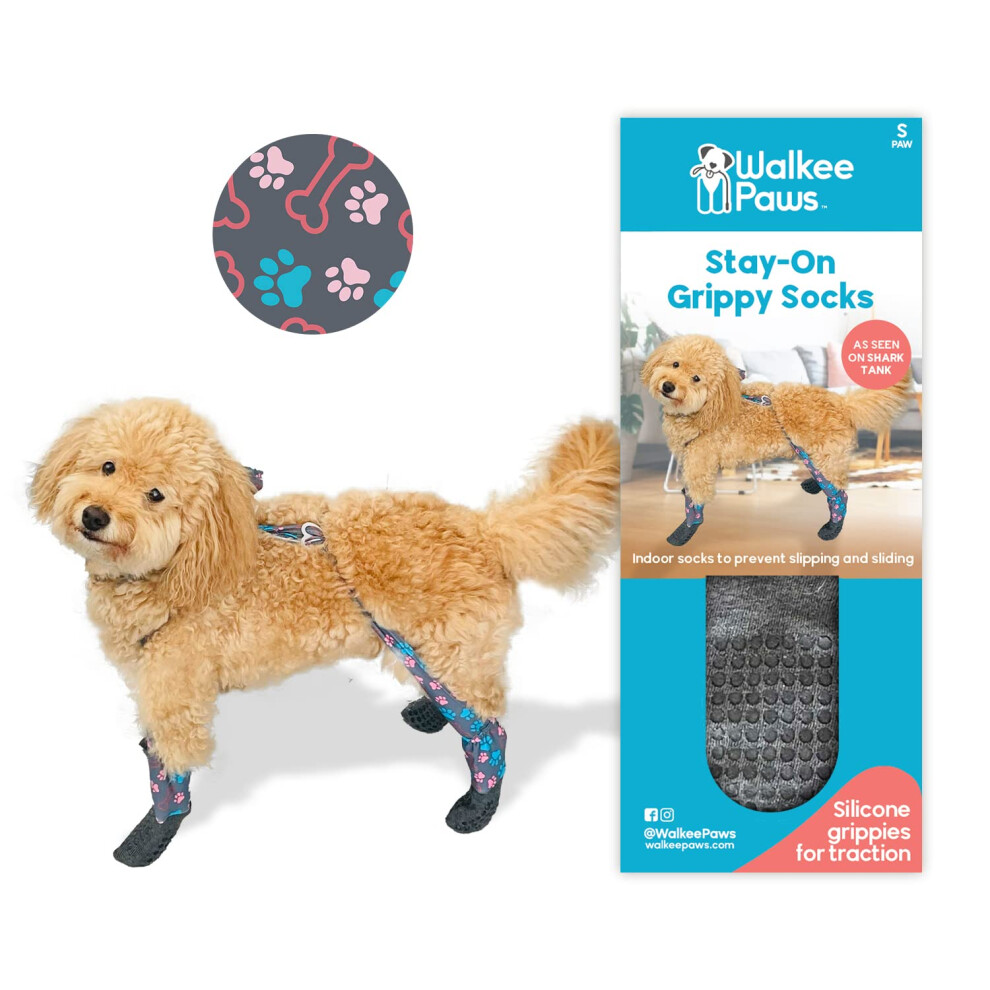 WALKEE PAWS Stay-on Non-Slip Dog Socks to Prevent Licking Paws and Slipping on Hardwood Floors. Seen on Shark Tank Never Lose a Dog Sock Again (Smal