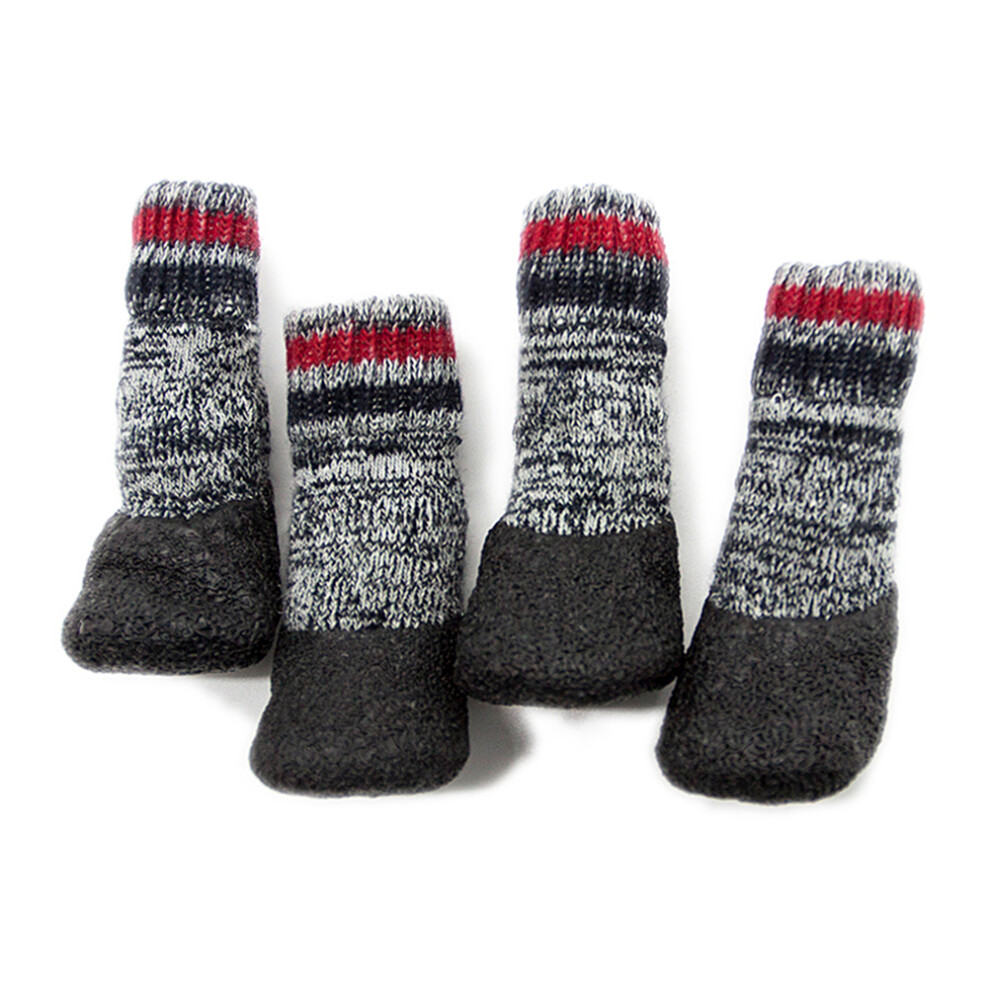 4 Pairs Pet Padded Warm Waterproof Non Slip Dog Socks Gray