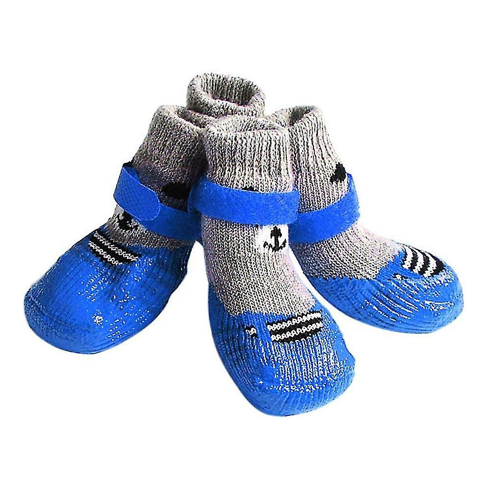 Non-Slip Dog Socks Waterproof Dog Boots Cotton Pet Shoes For Indoor (Blue) S