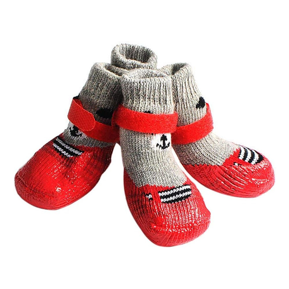 Dog Shoes?Dog Shoes And Socks-S Size Red,Non-Slip Dog Socks, Waterproof Cotton Pet Boots For Indoor (Red) S