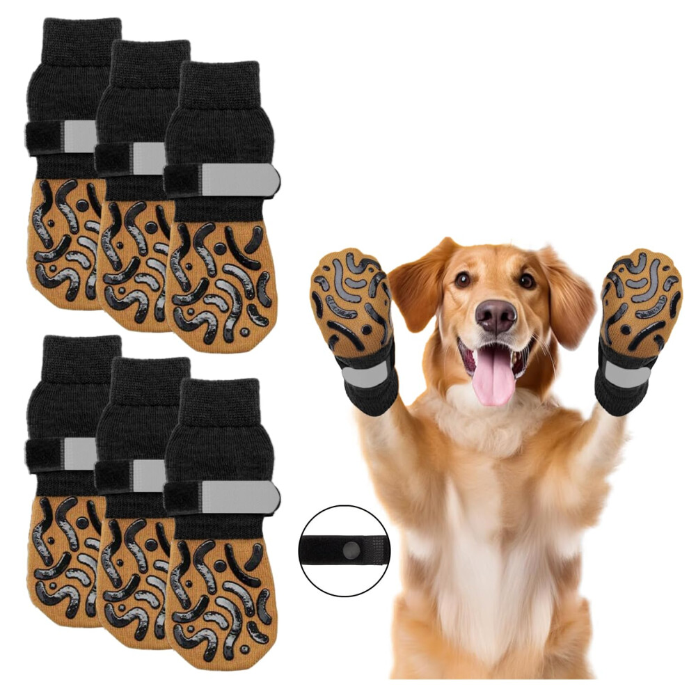 Non-Slip Dog Socks for Indoor Wear, Adjustable Strap Paw Protector with Rubber Reinforcement, Quality Cotton for Small to Large Dogs