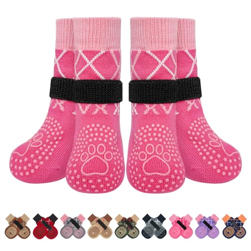 Non Slip Dog Socks with Adjustable Straps, Paw Protector Pads for Indoor Wear, Fashionable Pet Socks for Hardwood Floors