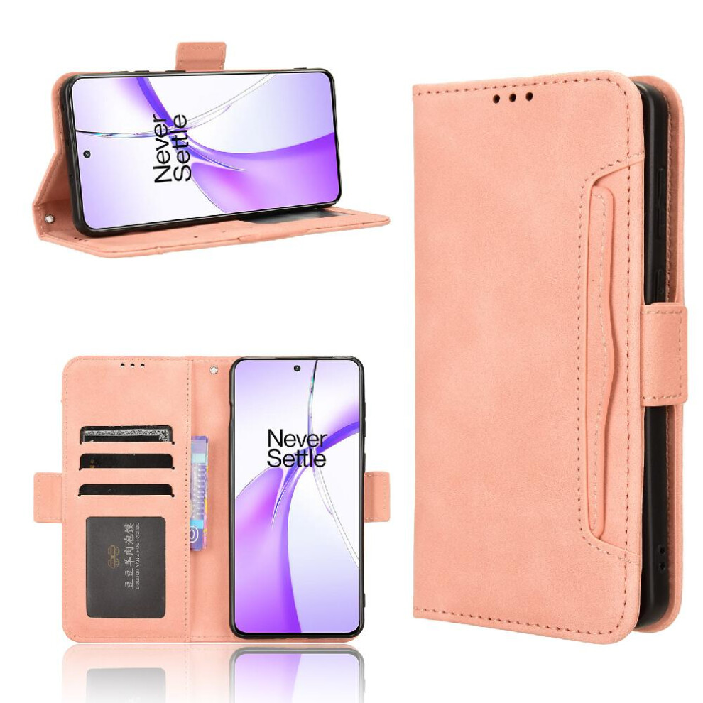 (Pink) Case For OnePlus Nord CE4 5G Magnetic Closure Adjustable Detachable Card Holder Leather Wallet Cover