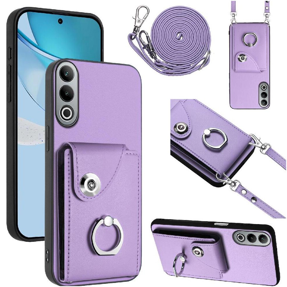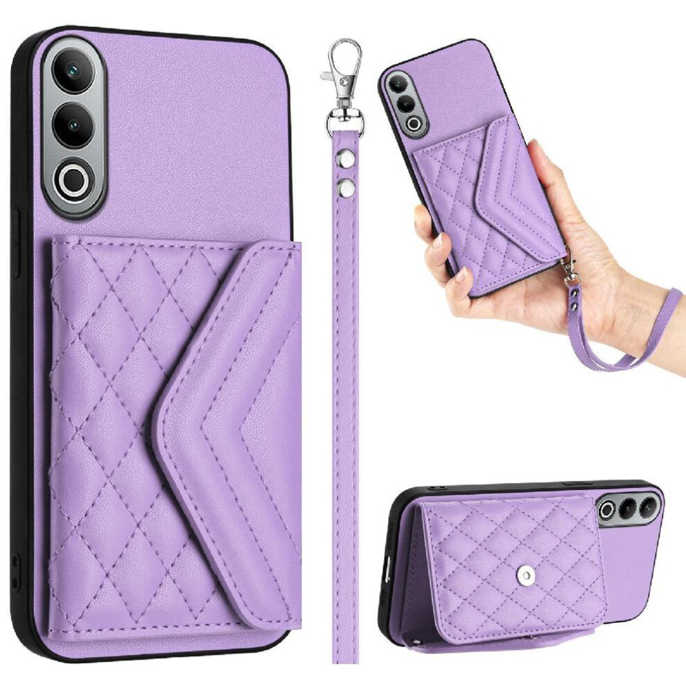 (Purple) Flip Case for Oneplus Nord Ce4 Lite Shockproof Card Slot Holders Wallet Short Strap Long Strap