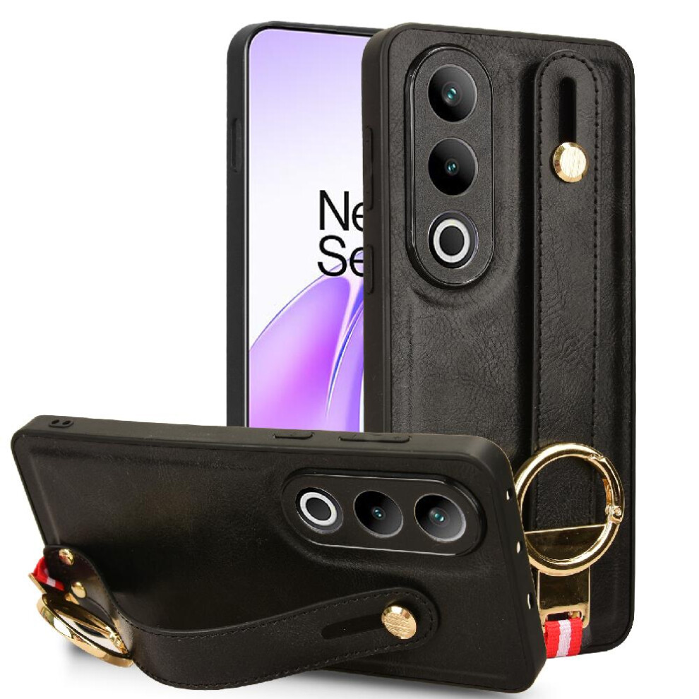 (Black) Case For Oneplus Nord CE4 5G Compatibility Convenience Premium PU Leather Wrist Strap
