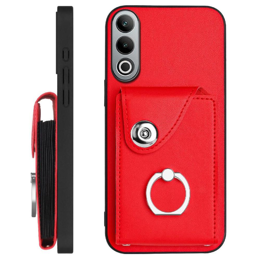 (Red) Case For Oneplus Nord CE4 5G Compatibility Convenience Premium PU Leather Wrist Strap