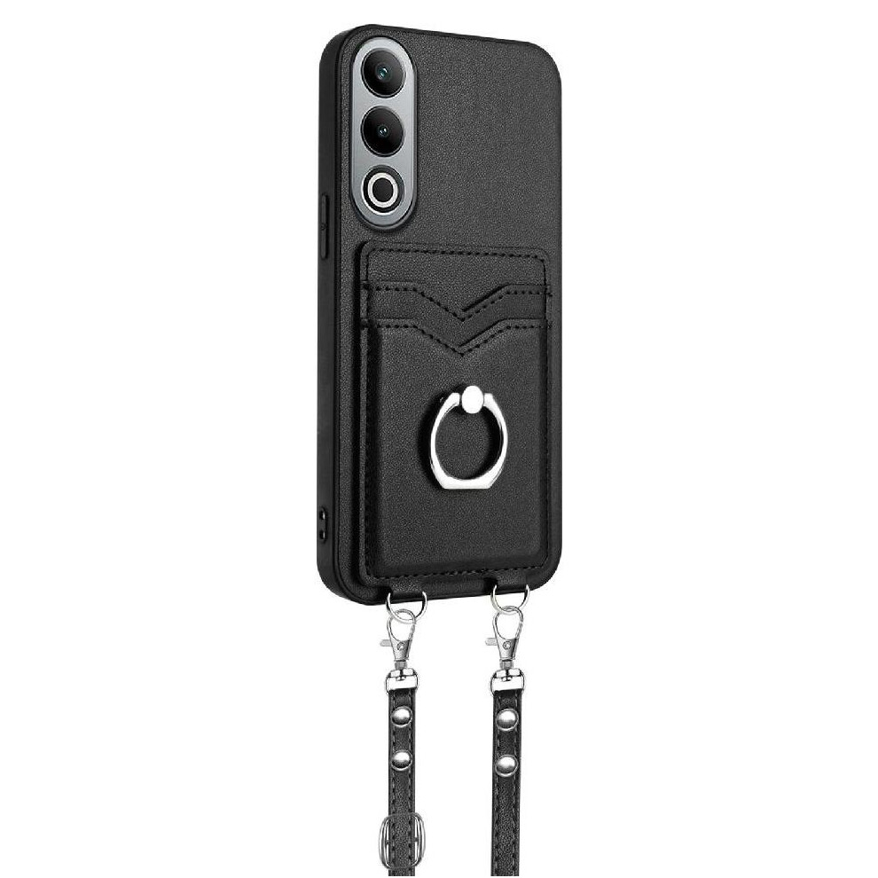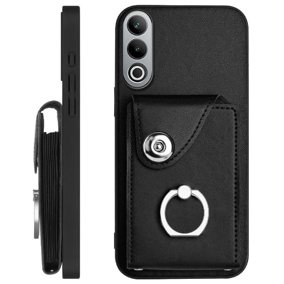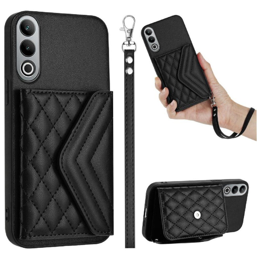 (Black) Flip Case for Oneplus Nord Ce4 Lite Shockproof Card Slot Holders Wallet Short Strap Long Strap