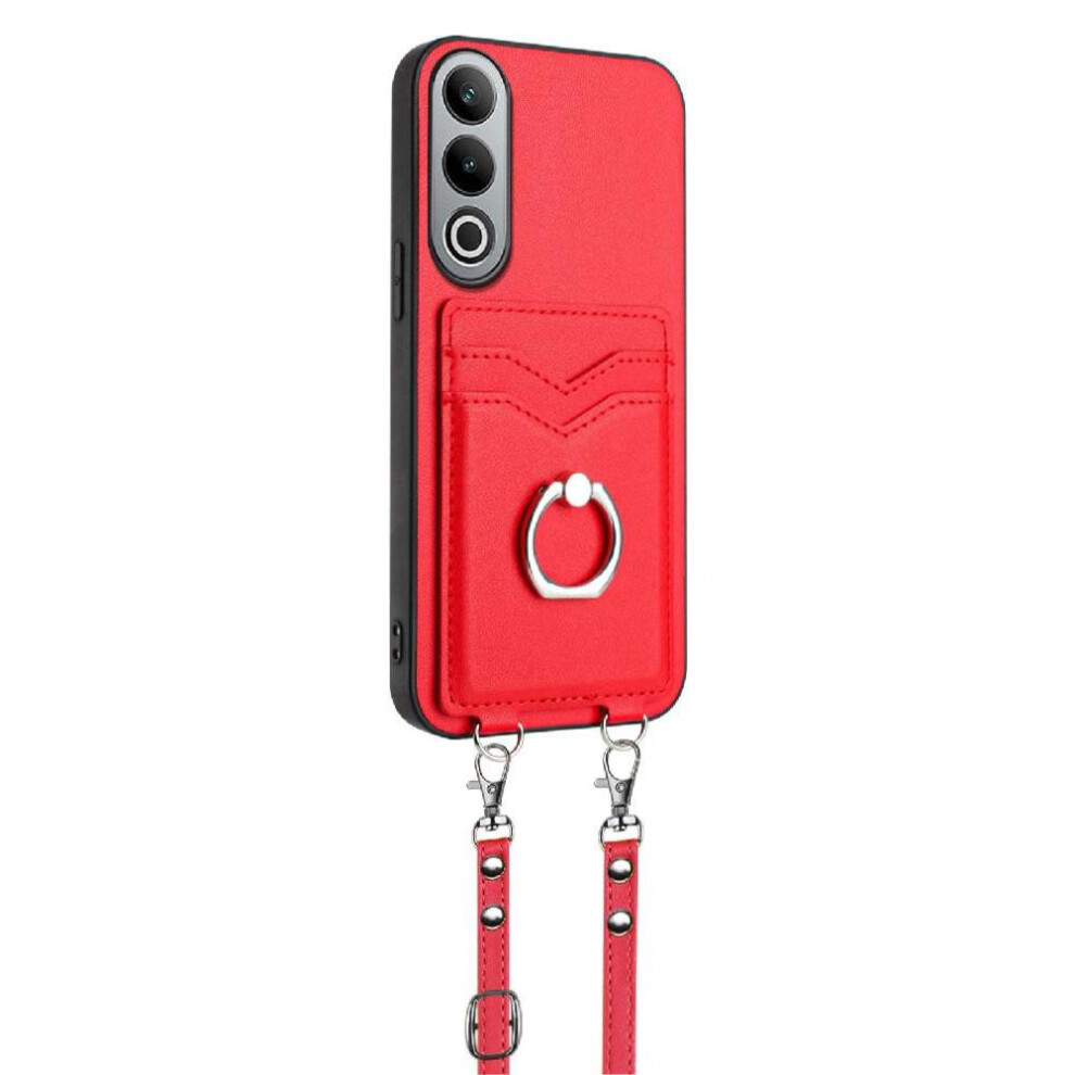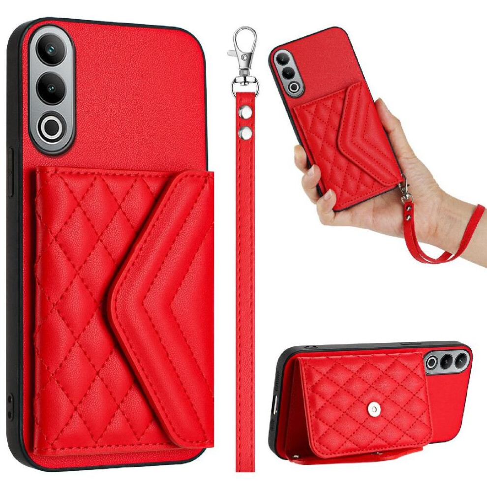 (Red) Flip Case for Oneplus Nord Ce4 Lite Shockproof Card Slot Holders Wallet Short Strap Long Strap