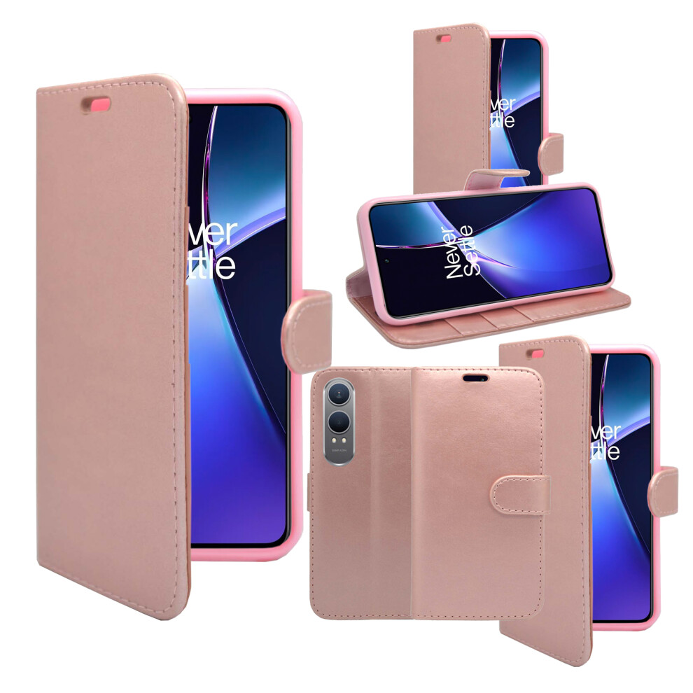 (Rose Gold) Case OnePlus Nord CE4 Lite Wallet Flip PU Leather Cover