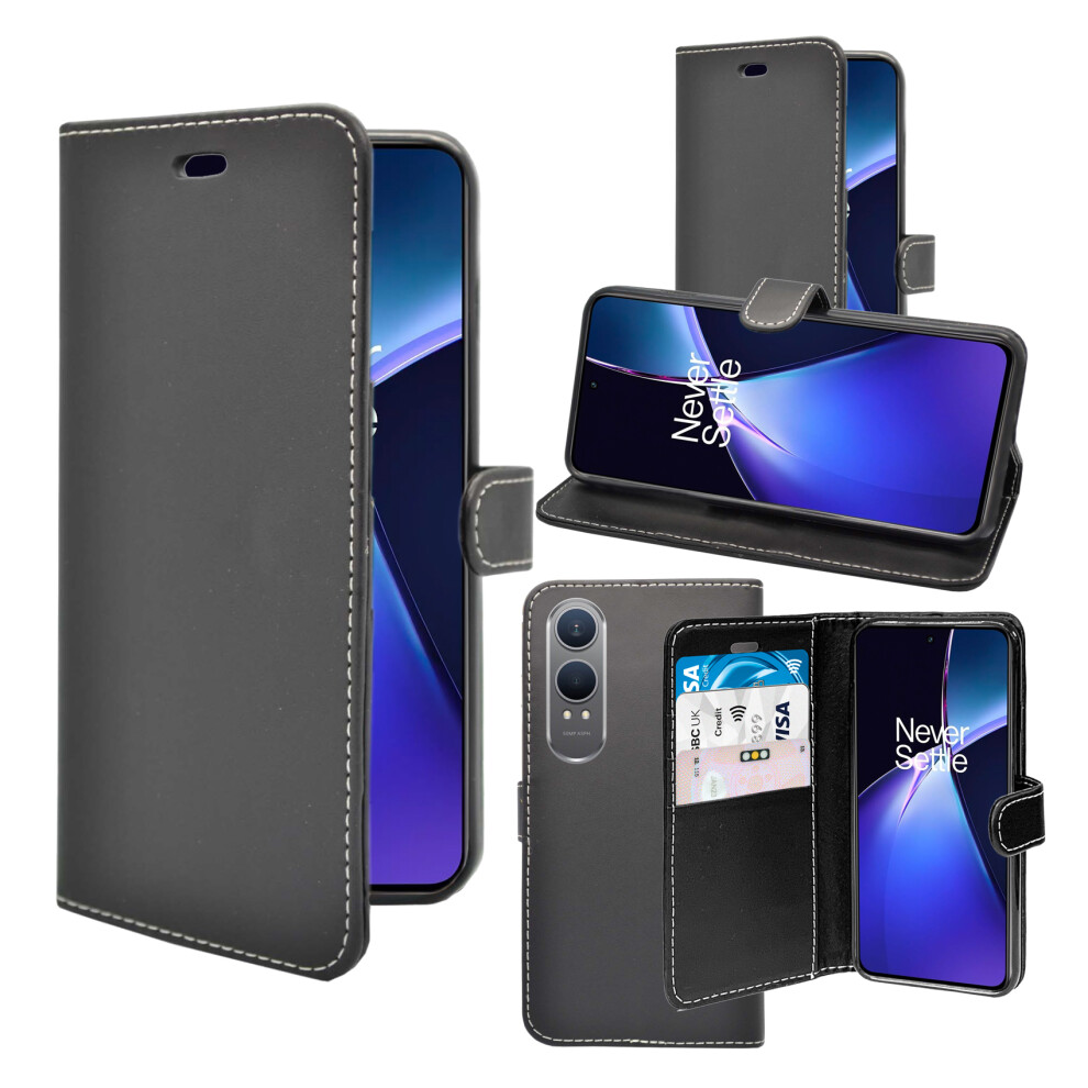 (Black) Case OnePlus Nord CE4 Lite Wallet Flip PU Leather Cover