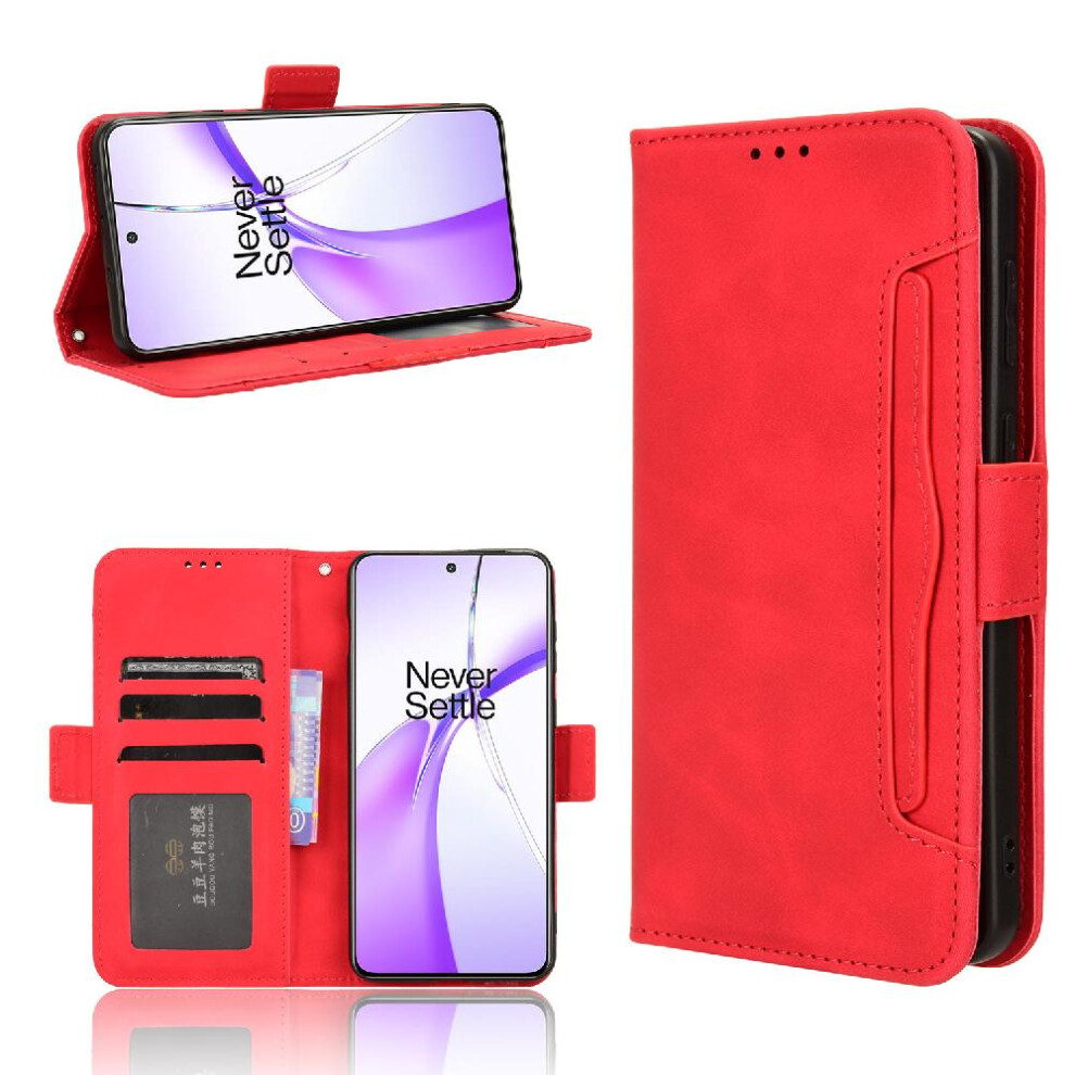 (Red) Case For OnePlus Nord CE4 5G Magnetic Closure Adjustable Detachable Card Holder Leather Wallet Cover