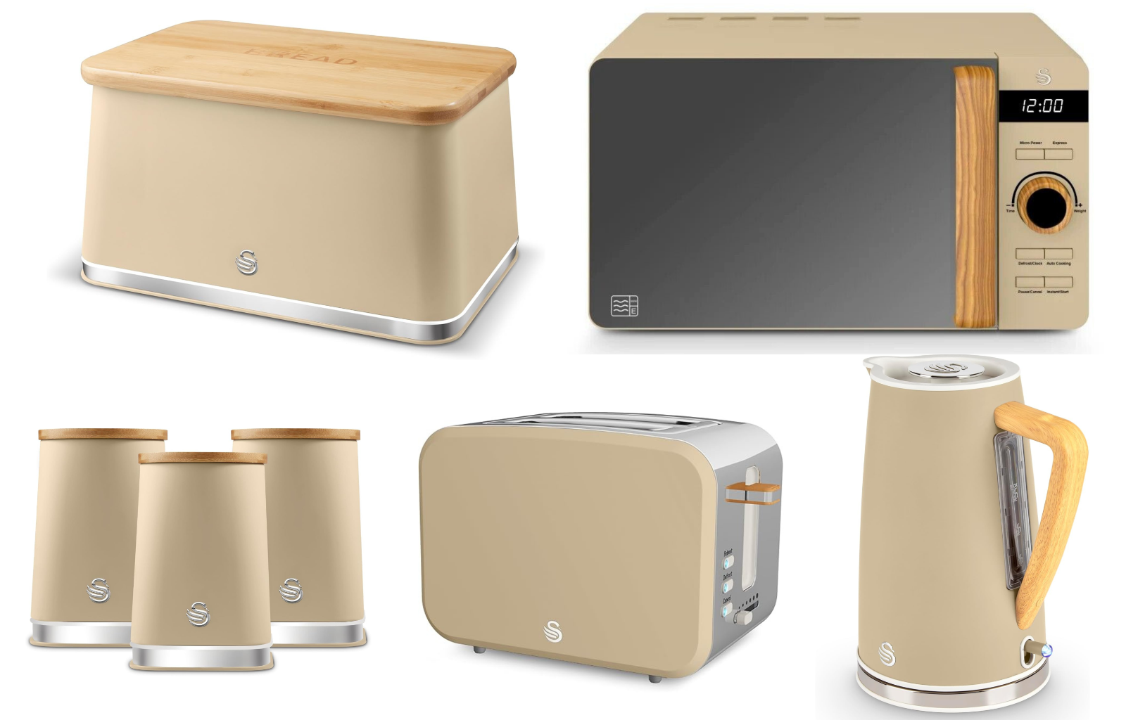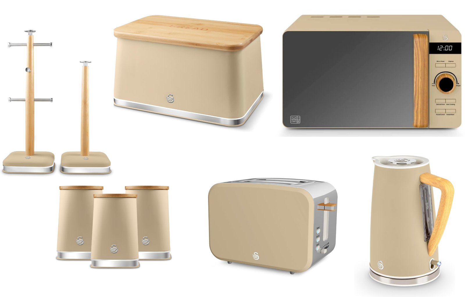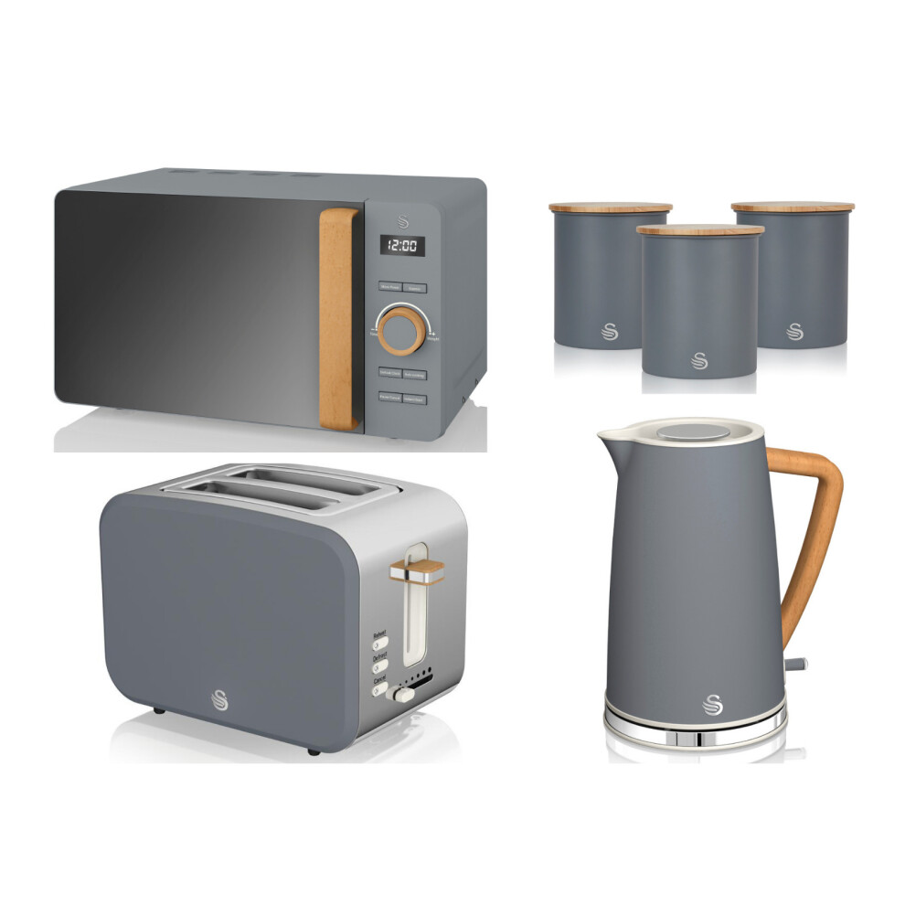 Swan Nordic Oatmeal Kettle Toaster Microwave and Canisters Kitchen Set