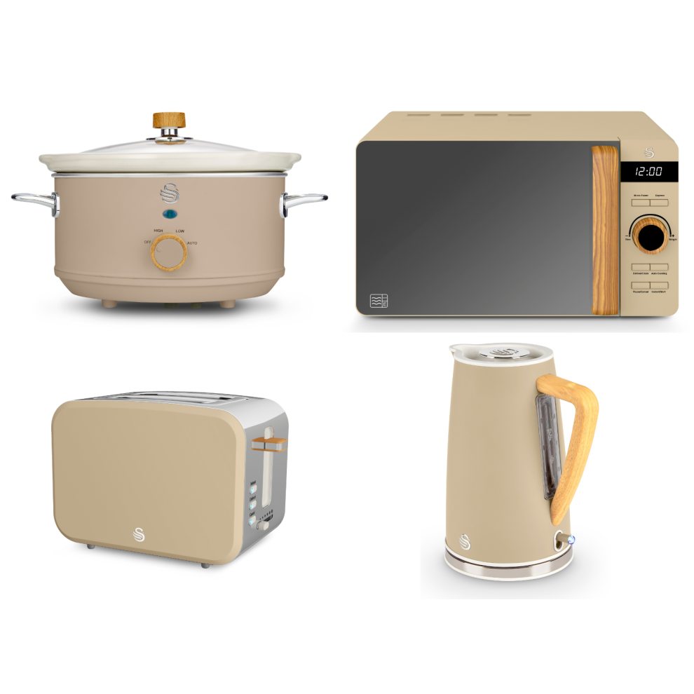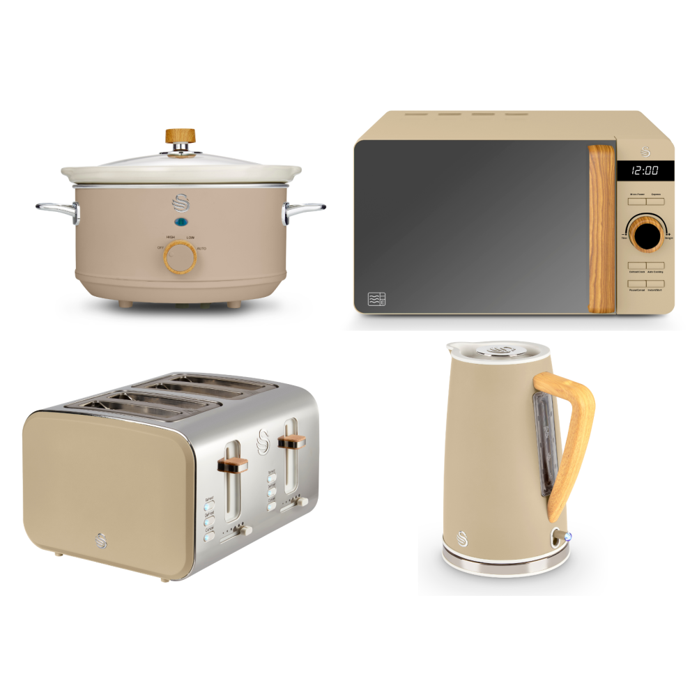 Swan Nordic Kettle 2 Slice Toaster Microwave & Slow Cooker in Oatmeal Colour