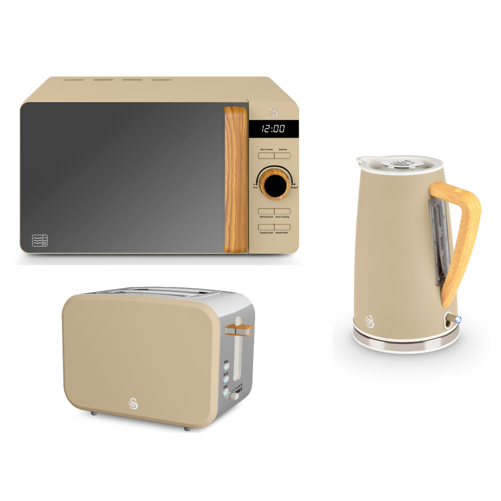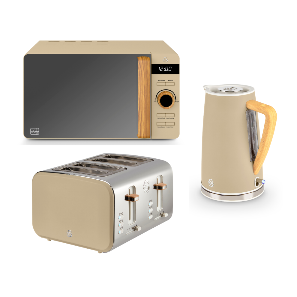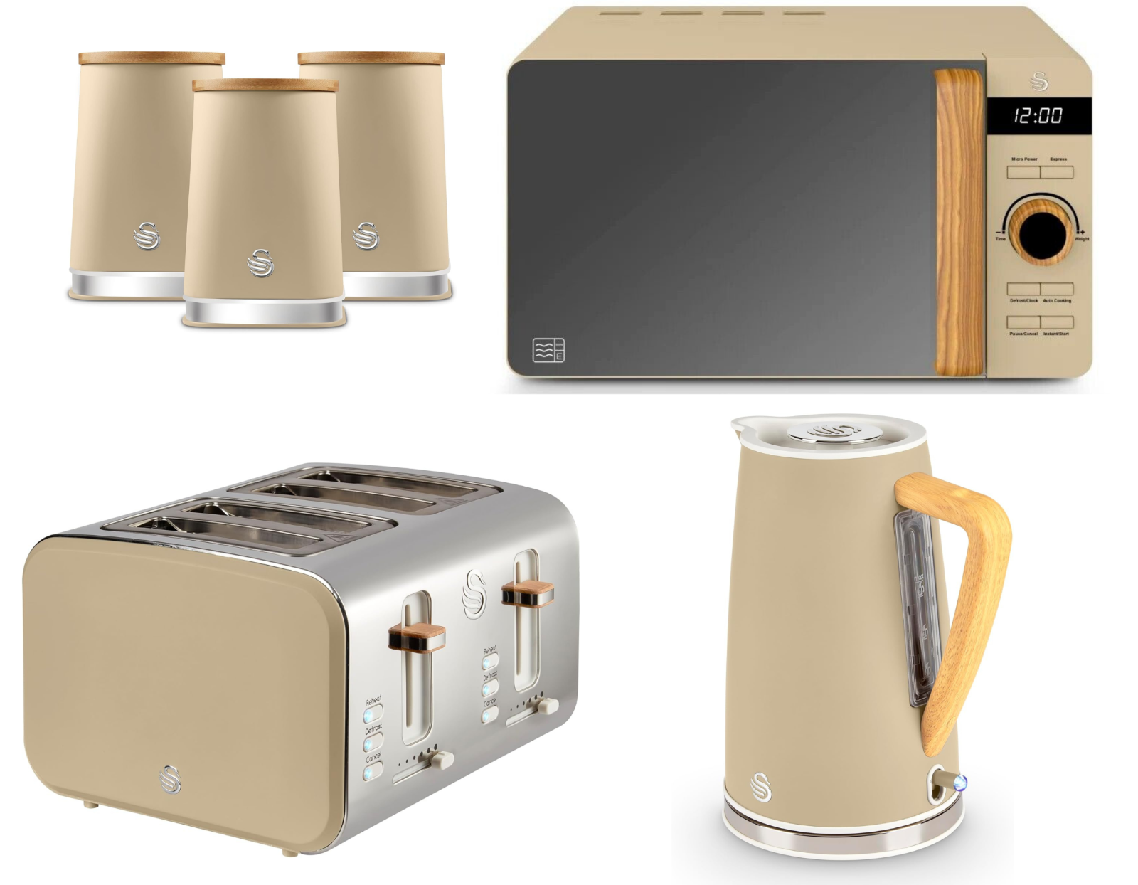 Swan Nordic Kettle Toaster & Microwave. Matching Kitchen Set in Oatmeal Colour