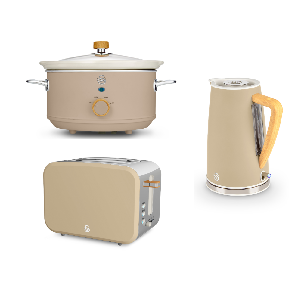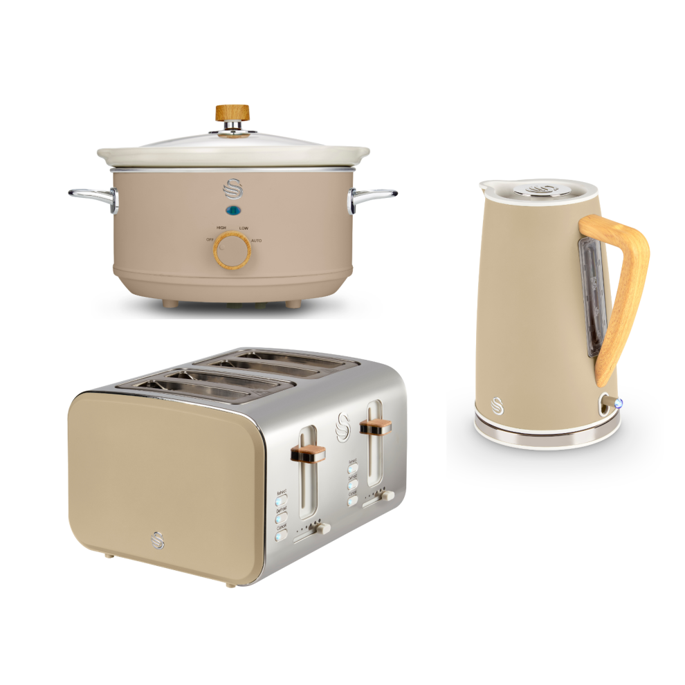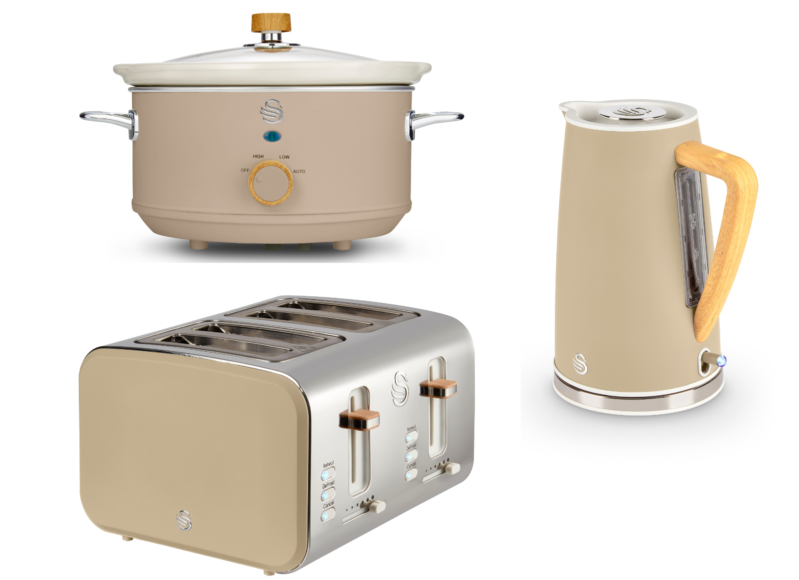 Swan Nordic Kettle Toaster & Slow Cooker. Scandinavian Design Oatmeal Colour