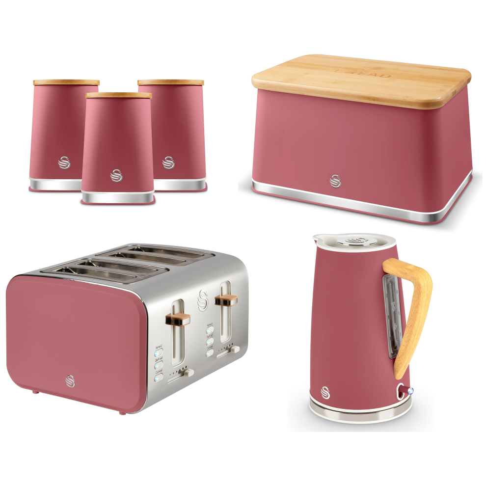 Swan Nordic Fuschia Rose Kettle 4 Slice Toaster & Kitchen Storage Set