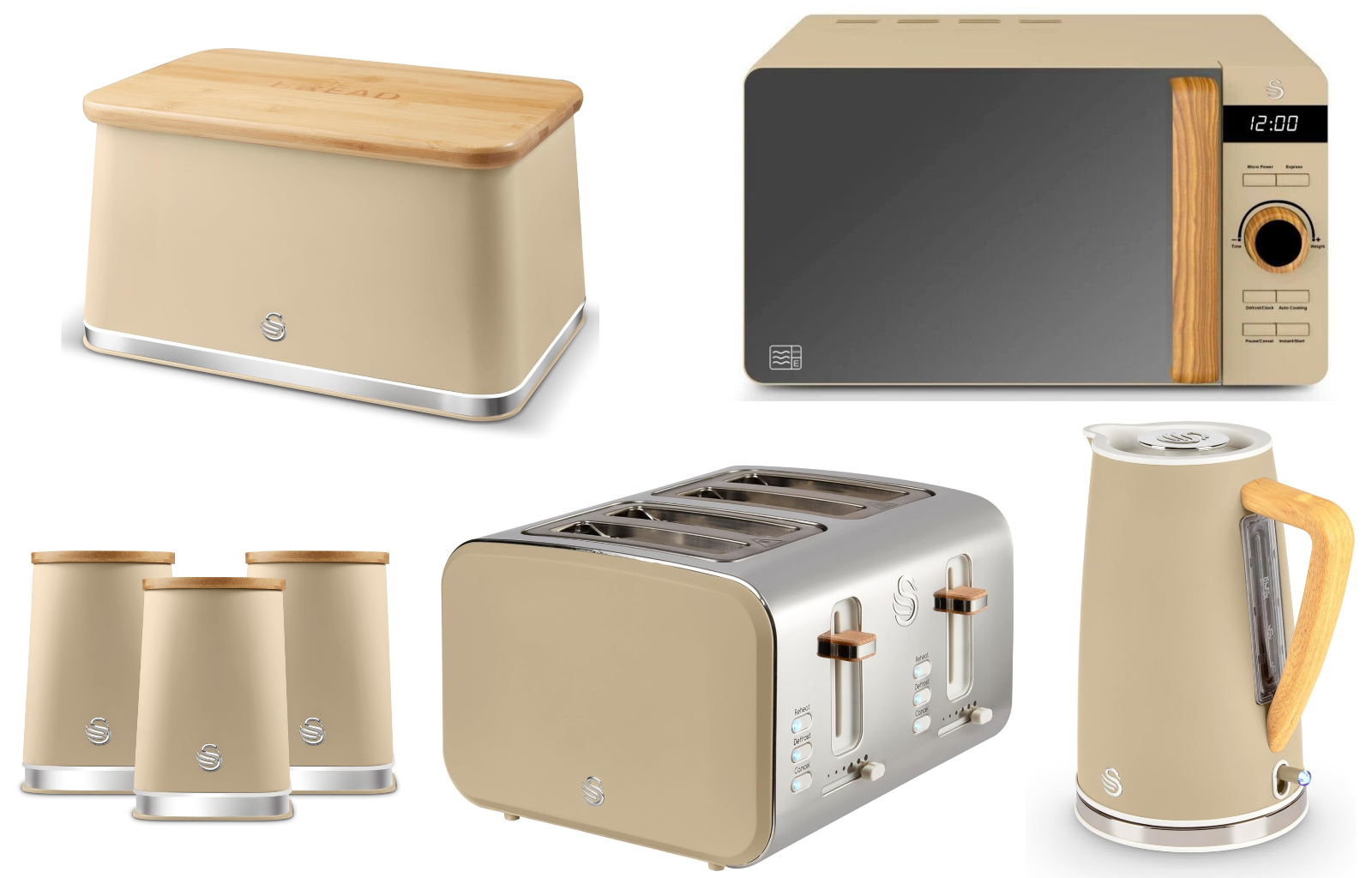 Swan Nordic Oatmeal Kettle Toaster Microwave Breadbin Canisters Set