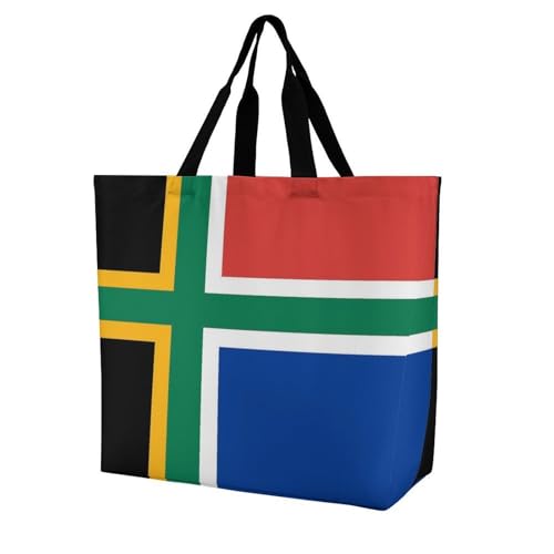 South African Nordic Crossed Flag Reusable Grocery Bag Large Capacity Foldable Shopping Tote with Inner Pocket