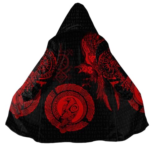 BBYOUTH Viking Cloak | Mid-Length | Hooded | with Pocket | Faux Cashmere Lining | Autumn Winter | Nordic Valhalla Cape,Odin's Raven,M