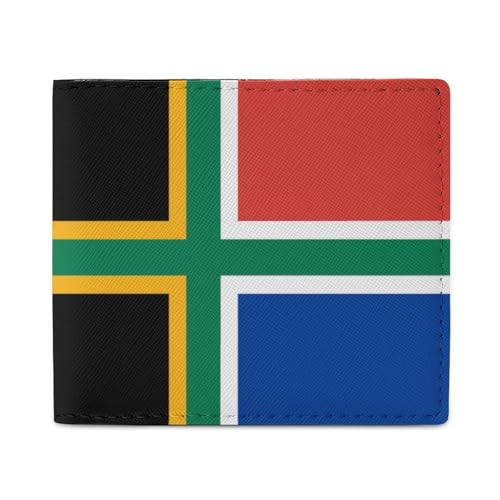 South African Nordic Crossed Flag Men Wallet Leather Bifold Wallets with Window Slim Minimalist Front Pocket