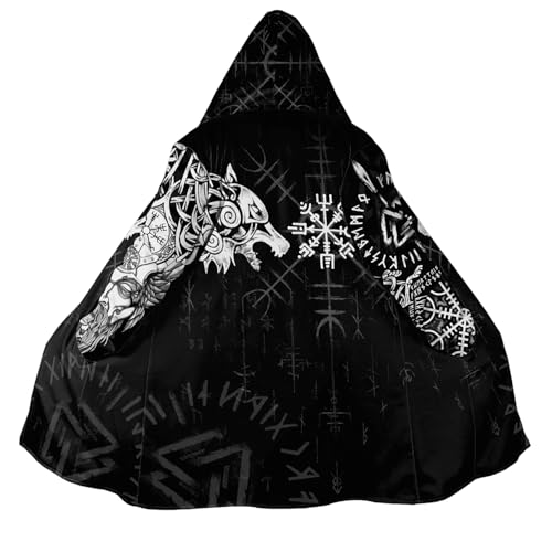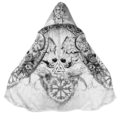 BBYOUTH Viking Cloak | Mid-Length | Hooded | with Pocket | Faux Cashmere Lining | Autumn Winter | Nordic Valhalla Cape,Geri&Freki,5XL