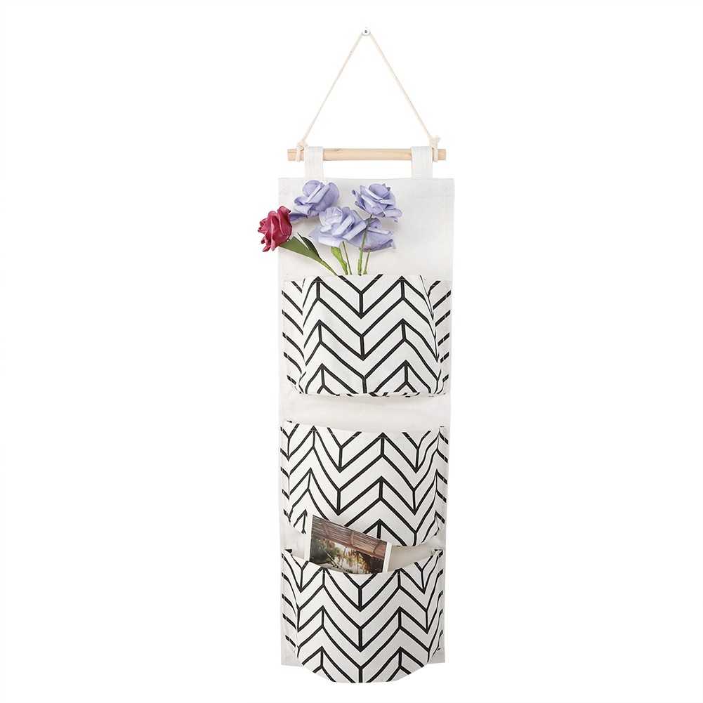 3-pocket Hanging Bag Wall Cotton And Linen Hanging Storage Bag Nordic Minimalist