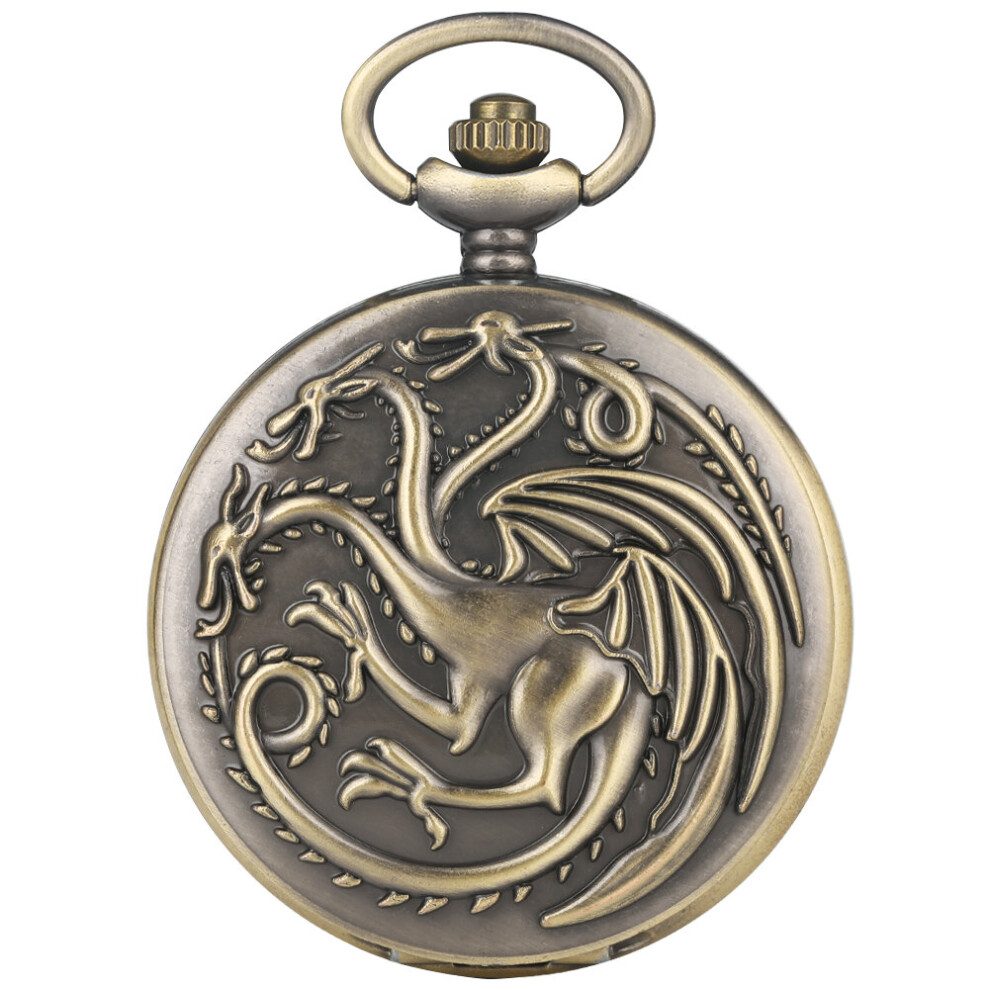 Retro Gray Three-headed Fire Dragon Necklace Quartz Pocket Watch Men Antique Nordic Amulet Pendant Women Game Movie Jewelry Hour