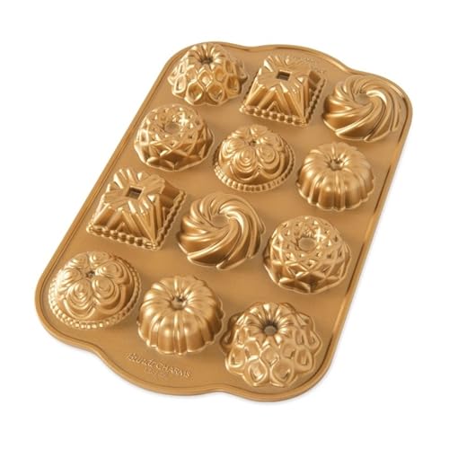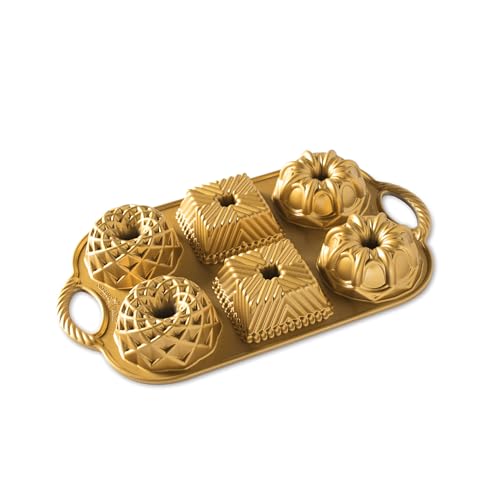 Nordic Ware Anniversary Bundtlette Pan, Cast Aluminium Mini Bundt Tin, Bundt Cake Tin for 6 Cakes, Premium Cake Mould Made in the USA, Colour: Gold