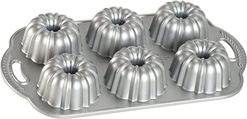 Nordic Ware Anniversary Bundtlette Pan, Cast Aluminium Bundt Cake Tin to Bake up to 6 Mini Bundt Cakes, Non-Stick Pan Made in The USA, Colour: Silver