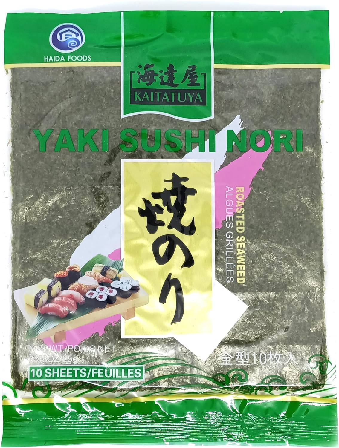 Kaitatuya Roasted Seaweed Green Full Size (Pack of 1, 10 Full Sheets) | Premium Japanese Nori | Crisp Texture & Rich Umami Flavour | Perfect for Sushi, Hand Rolls, Onigiri & Snacks