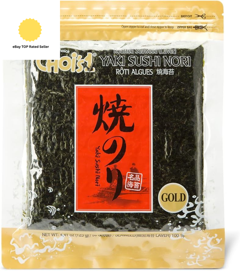 CHOI'S 1 DAECHUN Sushi Nori Seaweed, Roasted, Resealable, Gold Grade Laver (50