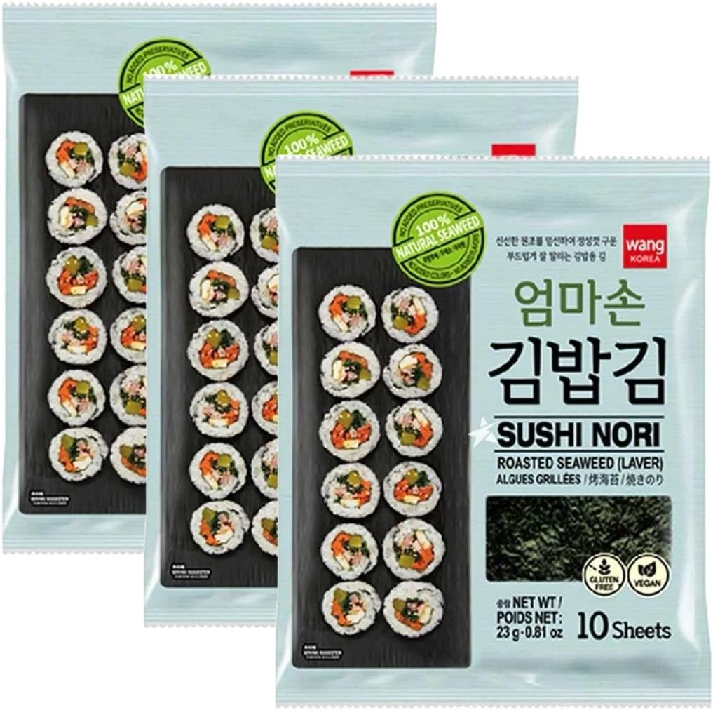 WANG Sushi Nori 100% Natural Roasted Seaweed Laver 23g (3 Packs with 30 Sheets)