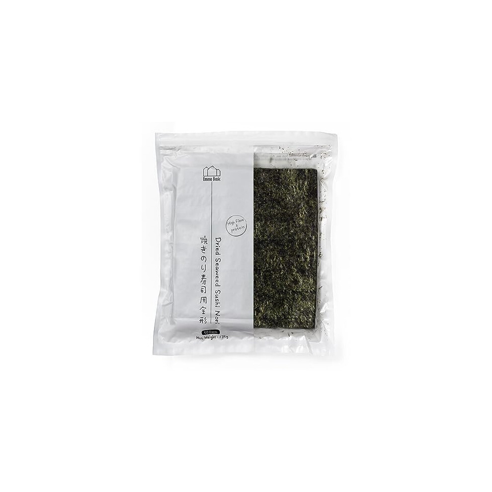 Emma Basic - Dried Seaweed Sushi Nori 50 Full Sheets | Young & Crunchy | High Protein | High Fibre| (Pack of 2)