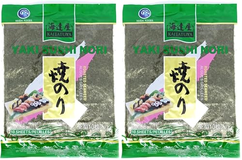 Kaitatuya Roasted Seaweed Green Full Size (Pack of 2, 10 Full Sheets) | Premium Japanese Nori | Crisp Texture & Rich Umami Flavour | Perfect for Sushi, Hand Rolls, Onigiri & Snacks