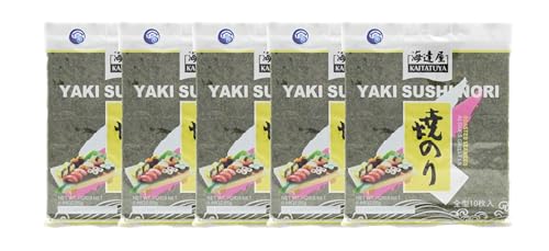 Kaitatuya Roasted Seaweed Gold Full Size (Pack of 5, 50 Full Sheets) | Premium Japanese Nori | Extra Crisp Texture & Rich Umami Flavour | Perfect for Sushi, Hand Rolls, Onigiri & Snacks