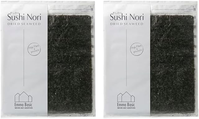 Emma Basic Dried Seaweed Sushi Nori - 50 Full Sheets, High Protein & Fibre